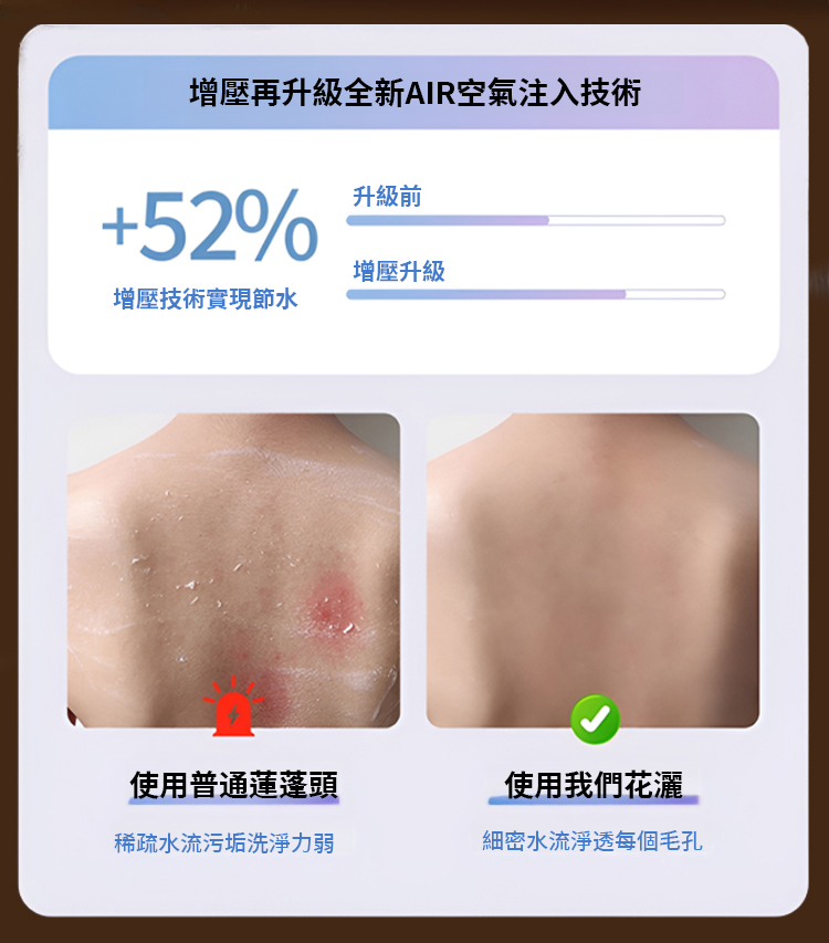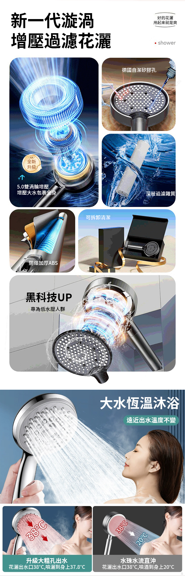 老房子設施陳舊讓人失望!洗澡水壓像眼淚?快把你家的花灑噴頭換成這款,航空級增壓技術,水壓瞬間飆升到1.5公斤!連頂樓住戶都能享受強力按摩水柱!獨家20cm超大面板,沐浴面積增加3倍,全身同時溫暖!5檔模式,隨心切換,暢享多種沐浴體驗!