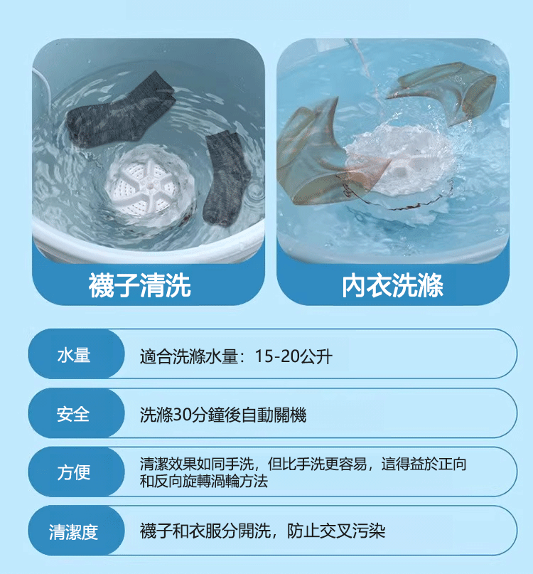 租房子不能裝洗衣機?這個USB渦輪讓你在房間偷偷洗!手洗內衣褲好麻煩?智能感應幫你搞定全部!插上行動電源就能洗!你看這個獨家變頻渦輪,正轉3秒、反轉2秒,模擬手洗搓揉動作!洗淨力比手洗提升50%,卻比手洗省水70%!
