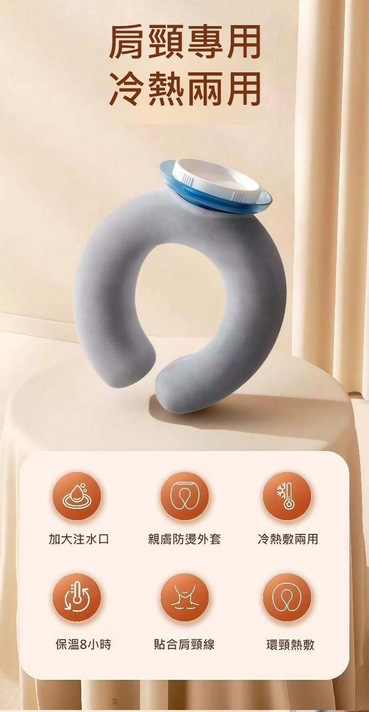 專門為頸部設計!能掛脖子上的熱水袋!輕鬆給頸部做熱敷,驅寒保暖,放鬆頸部肌肉!每天熱敷10分鐘,脖子活動更自在!