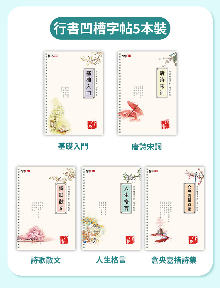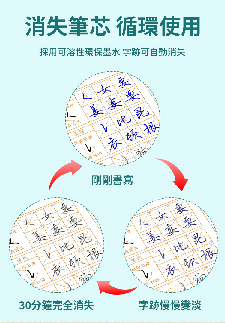 ✍️練字也是修心❤️大人孩子都能練的字帖🖊️贈送配套消失筆芯⏳⏳字跡可隨時間慢慢變淡↘️最後自動消失🔄字帖可以循環練習📔📕📗📘📙5本行書套裝✅涵蓋大部分生活常用字👍非常有用